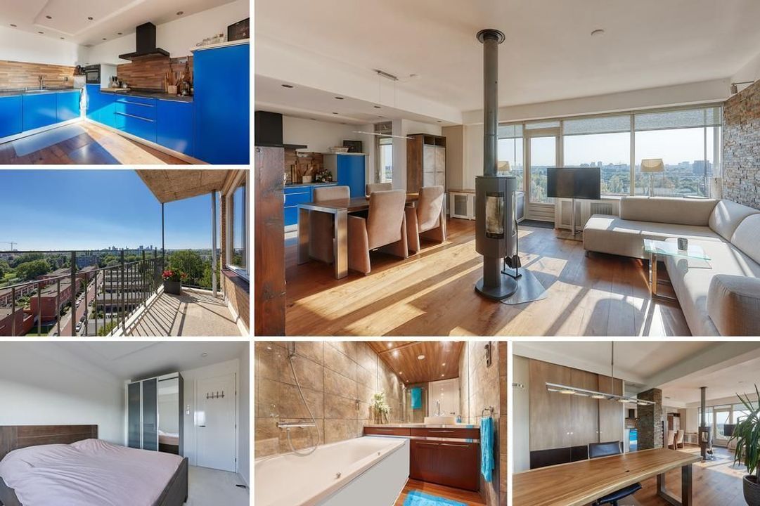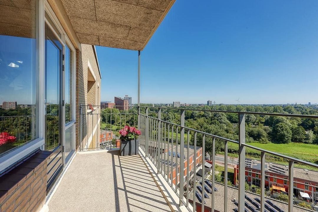 Gelegen op de bovenste woonlaag bieden wij met trots dit goed onderhouden 4-kamerappartement van ca. 95 m² aan. Door de hoge ligging geniet u hier van optimale privacy en een adembenemend uitzicht over de skyline van de stad. Het appartement beschikt over een lichte en ruime woonkamer met een comfortabele zithoek en een sfeervolle open haard. De moderne open keuken is voorzien van alle benodigde inbouwapparatuur. Daarnaast is er een werkplek met prachtig uitzicht. Verder zijn er twee goed bemeten slaapkamers, een moderne badkamer en een praktische was-/bergruimte. De woning is volledig voorzien van een fraaie houten vloer. Met twee balkons is er altijd een plek om van de zon en het uitzicht te genieten. In de onderbouw bevinden zich een gezamenlijke fietsenberging en een eigen berging.